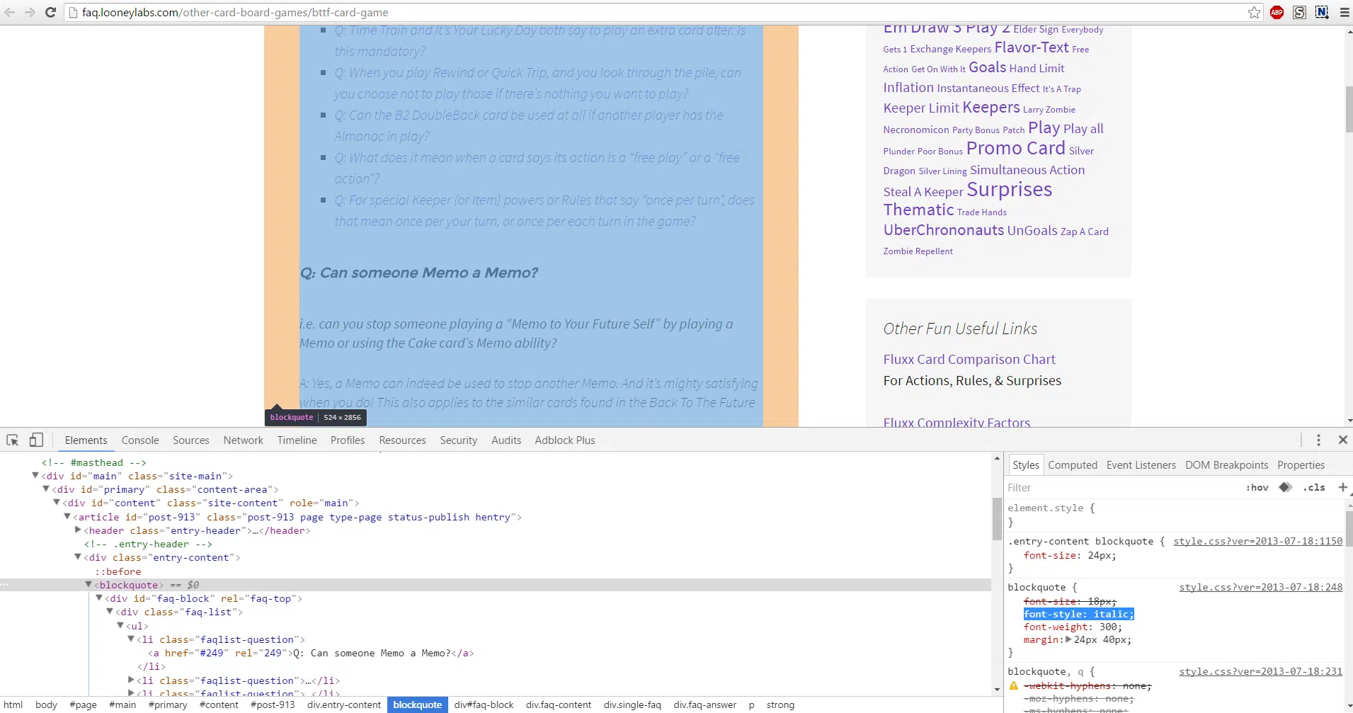 Heads up! this post was created when Microthemer was at version 4. The current version is 7. Some references to the interface may be out of date. One of my pages has the entire body in italics. I’m figuring there’s some selector which is overriding settings that are applying to the rest of my similar pages, but I’ve managed to forget what I did to create all this (since, once set, it’s been looking great!) I can’t figure out where to see which selectors are applying to what targets, and thereby turn them on or off to see if I can get this one page to look like the others. I did just rewatch the basic tutorial, which is still great, but didn’t help me with this. Here’s a link to what most of my FAQ Topic pages look like: And here’s a link to what this one FAQ Topic page looks like: Thanks for your help! (I noticed that our plugin is not up to date and requested our code-person update it, but this did not seem like an issue that stemmed from that, so going ahead and posting.) |